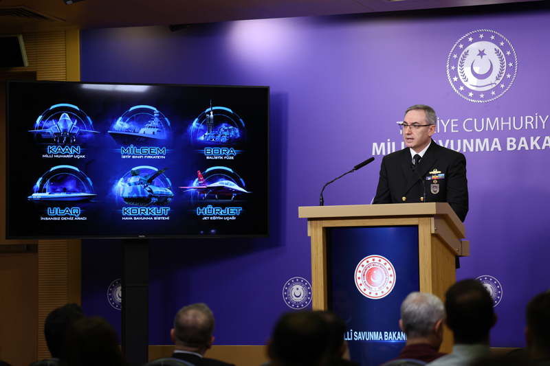 Tuğamiral Aktürk, Cumhurbaşkanı Recep Tayyip Erdoğan'ın liderliği ve teşvikiyle tam bağımsız savunma sanayi hedefi doğrultusunda geliştirilen yerli ve milli savunma sanayisi ürünleriyle TSK'nın her geçen gün daha da güçlendiğini ve caydırıcılığını artırdığını belirtti.
