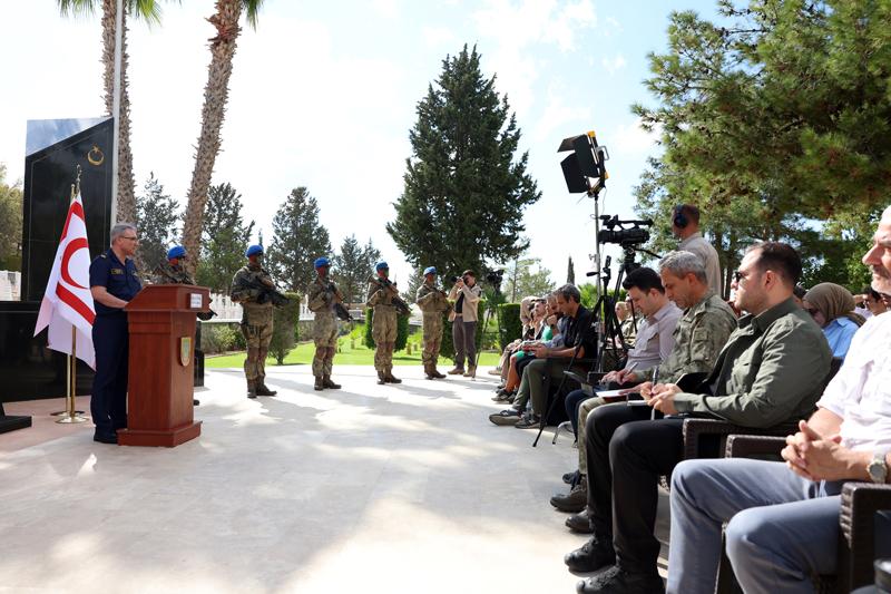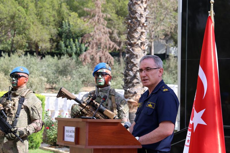 MSB Basın ve Halkla İlişkiler Müşaviri ve Bakanlık Sözcüsü Tuğamiral Zeki Aktürk, 20 Temmuz 1974'te gerçekleştirilen Kıbrıs Barış Harekatı'nda vatan ve millet uğruna şehit olan kahraman Mehmetçiğin ve mücahitlerin yan yana yattığı Kuzey Kıbrıs Türk Cumhuriyeti'nde bulunan Boğazköy Şehitliği'nde düzenlenen haftalık basın bilgilendirme toplantısında konuştu.