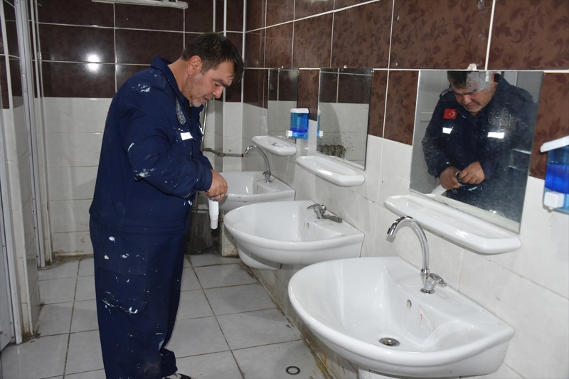 Kent merkezindeki okullarda incelemelerde bulunarak bakım ihtiyacı duyulan eğitim kurumunda elektrik ve su tesisatını yenileyen, hasarlı yerleri onaran görevliler, kapı ve pencerelerde kırık ve bozuk olan parçaları yenisiyle değiştiriyor.