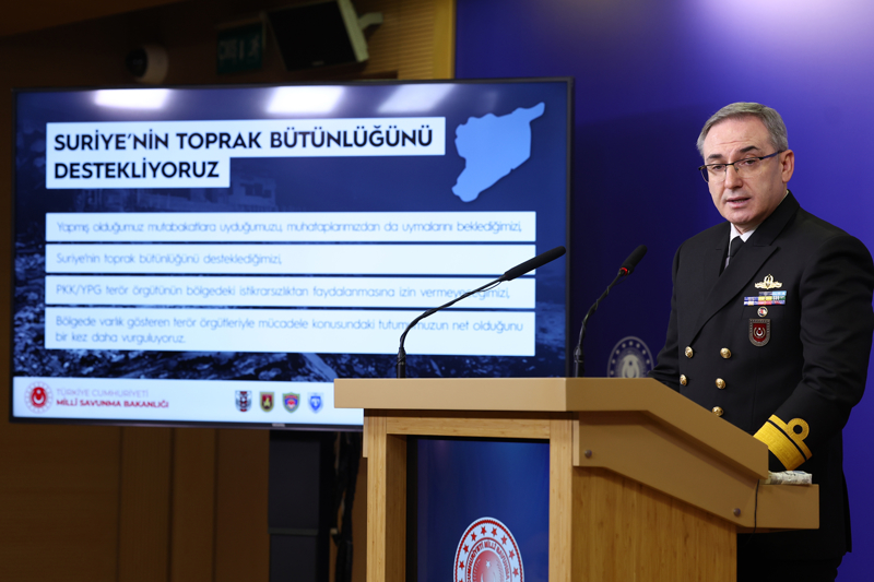 MSB Basın ve Halkla İlişkiler Müşaviri Tuğamiral Zeki Aktürk, Bakanlıkta düzenlenen haftalık basın bilgilendirme toplantısında, Türk Silahlı Kuvvetlerinin (TSK), PKK/KCK/PYD-YPG, DEAŞ ve FETÖ terör örgütleri başta olmak üzere her türlü tehdit ve tehlikeye karşı yurt içinde ve sınır ötesinde kesintisiz şekilde ve başarıyla operasyonlarına devam ettiğini vurguladı.