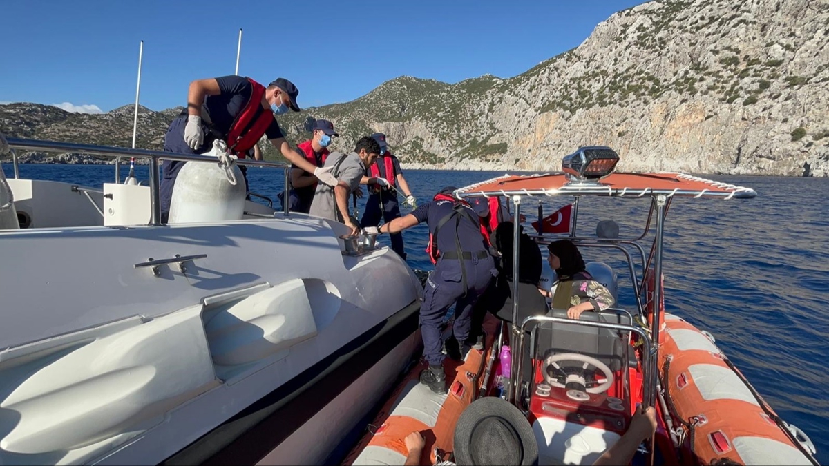 Marmaris ilçesi Armella Koyu'nda bir grup düzensiz göçmen olduğu bilgisi üzerine bölgeye sahil güvenlik botu ve dalış timi görevlendirildi.