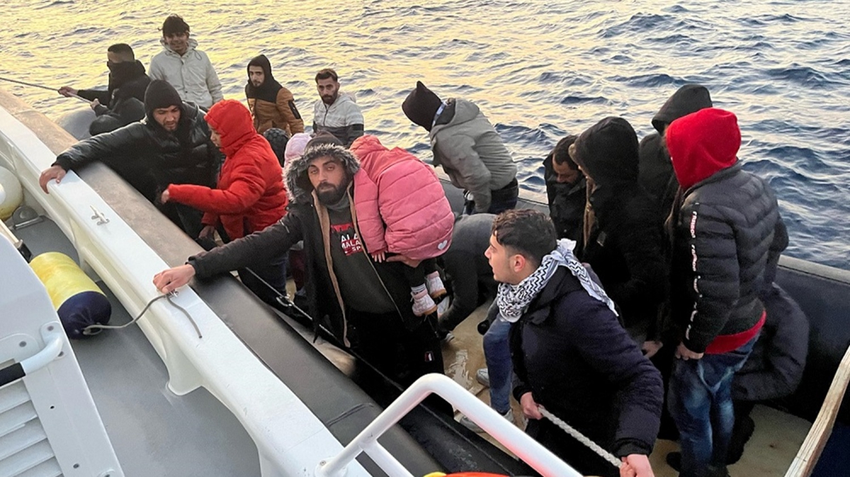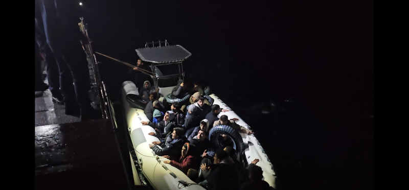 Ekipler, 2 lastik bottaki aralarında çocuklarında bulunduğu 54 düzensiz göçmeni karaya çıkardı.