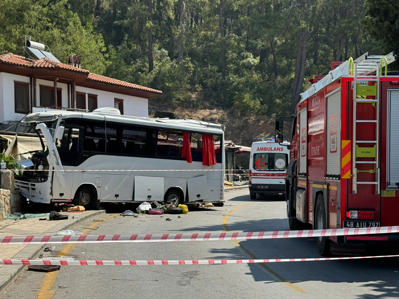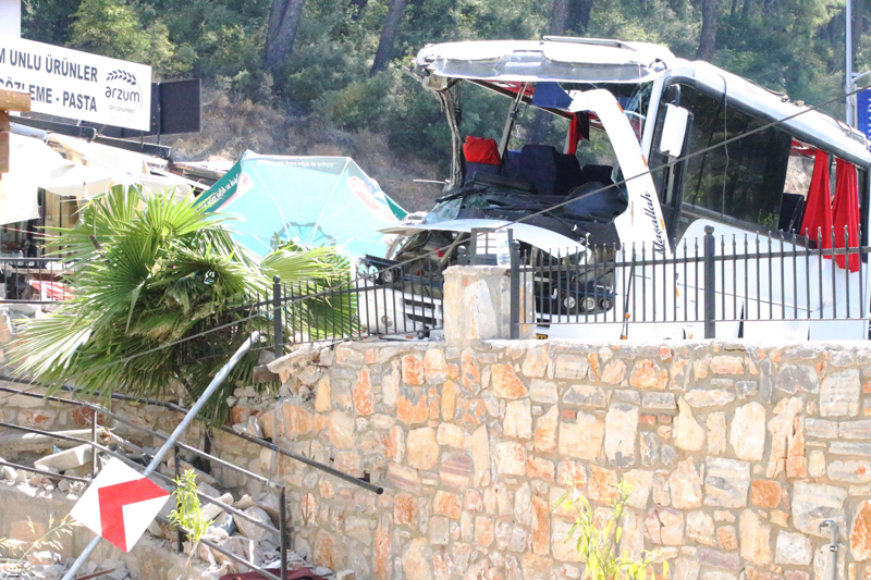 Ula ilçesi Akyaka Mahallesi girişinde yerli turistleri taşıyan Mehmet D'nin kullandığı 20 AIV 199 plakalı tur midibüsü park halindeki 3 araca çarptıktan sonra bir evin bahçe duvarına vurarak durdu.