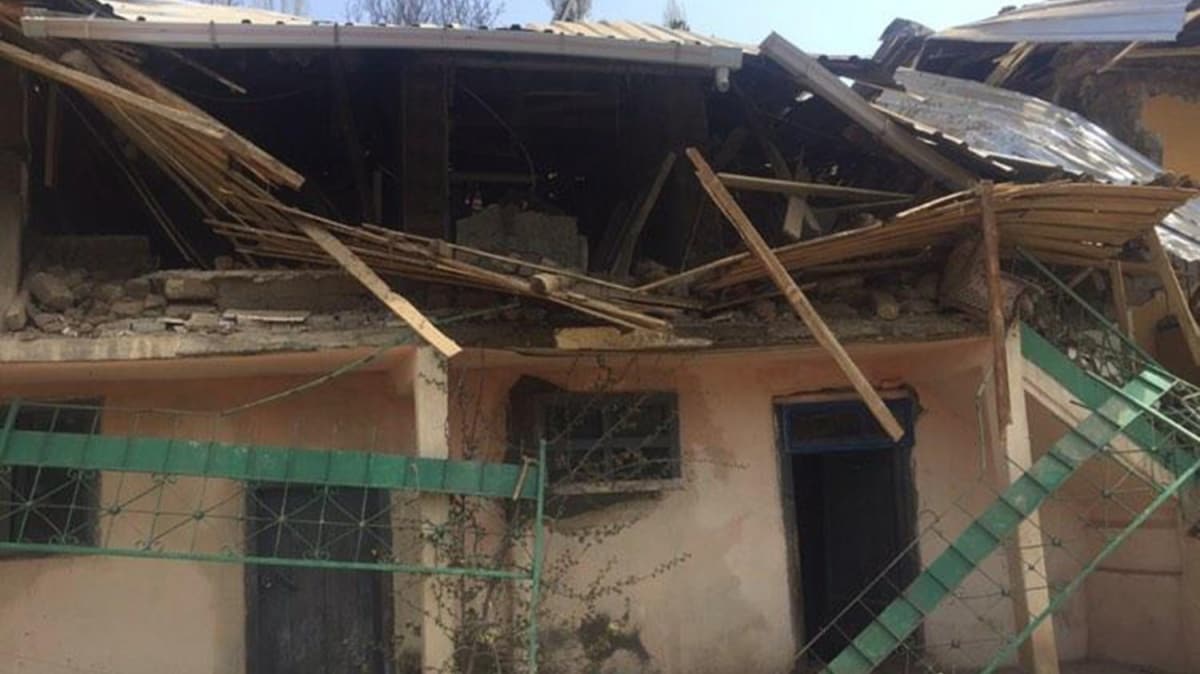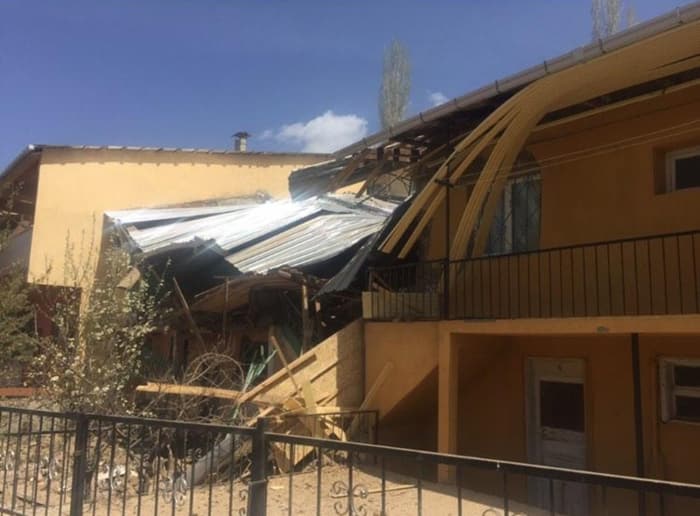 Pala çifti, patlamanın etkisiyle bir kısmı çöken iki katlı evin beton yığınları arasında kalarak hafif yaralandı.