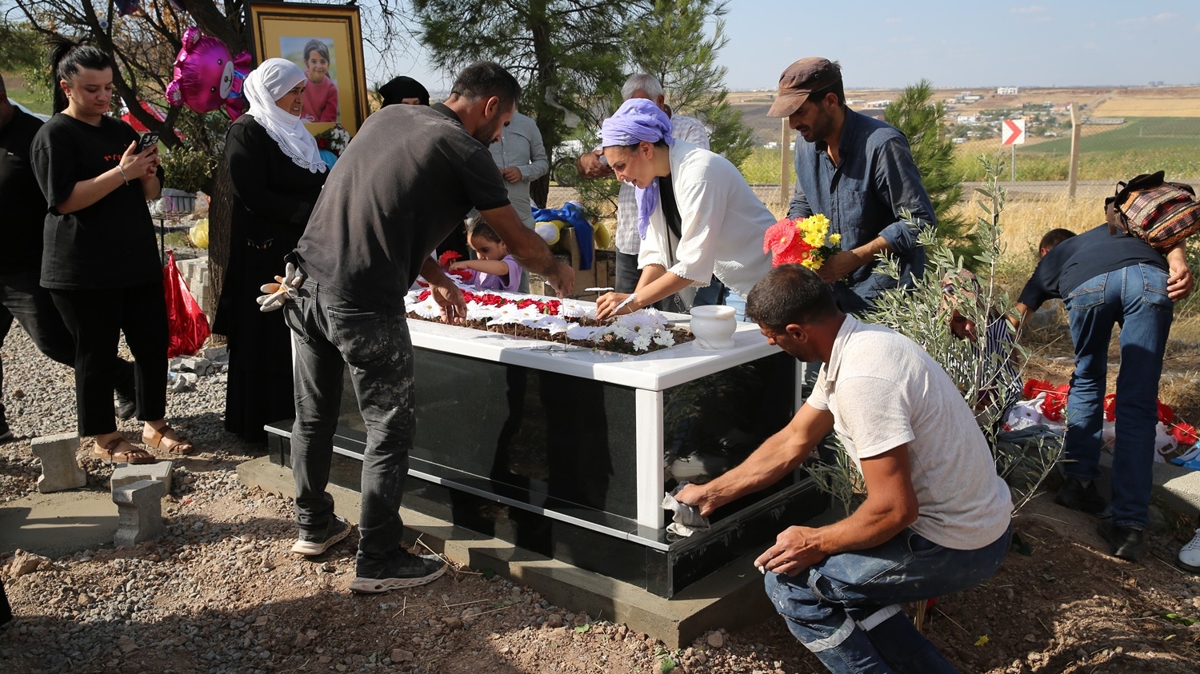 Ziyaretlerde mezara gelinlik, çiçek, çelenk, hikaye kitabı, okul önlüğü ve çantası bırakılırken, bazı ziyaretçiler duygusal anlar yaşıyor, gözyaşı döküyor.
