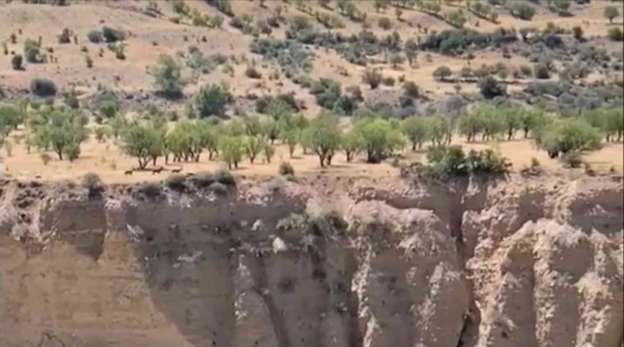 Sürü halinde yiyecek arayan dağ keçileri daha sonra hızla gözlerden kayboldu.