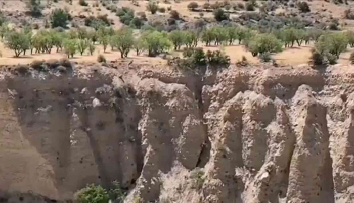 Bölgeden geçen vatandaşlar, dağlarda sürü halinde giden dağ keçilerini görünce cep telefonuyla kaydetti.