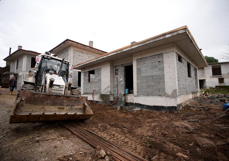 İzmir'in Ödemiş ilçesindeki orman yangınında zarar gören yapıların yerine planlanan ev, ahır, cami ve köy konaklarının inşası sürüyor.