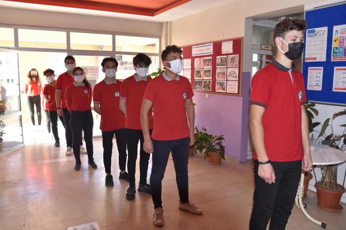 Şahin Kara, AA muhabirine, okula gelenlerin Kovid-19 tedbirleri kapsamında nöbetçi öğretmenler tarafından tek tek ateşlerinin ölçülmesinin zorluğu ve zaman alması nedeniyle bu sistemi geliştirdiklerini söyledi.