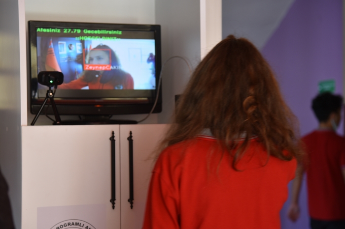 "Sistemde yüz tanıma teknolojisi bulunuyor. Öğrencilerimizi kayıtlı resimlerden tanıyor ve ateşini ölçüyor. Ölçülen ateş yüksek değerde ise uyarı mesajı veriyor. Nöbetçi öğretmenlerimiz hemen tedbir alıyor. Ateş değeri normalse öğrencilerimizin hızlı, güvenli bir şekilde okula girişlerini sağlayabiliyoruz."