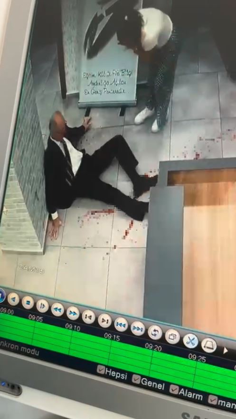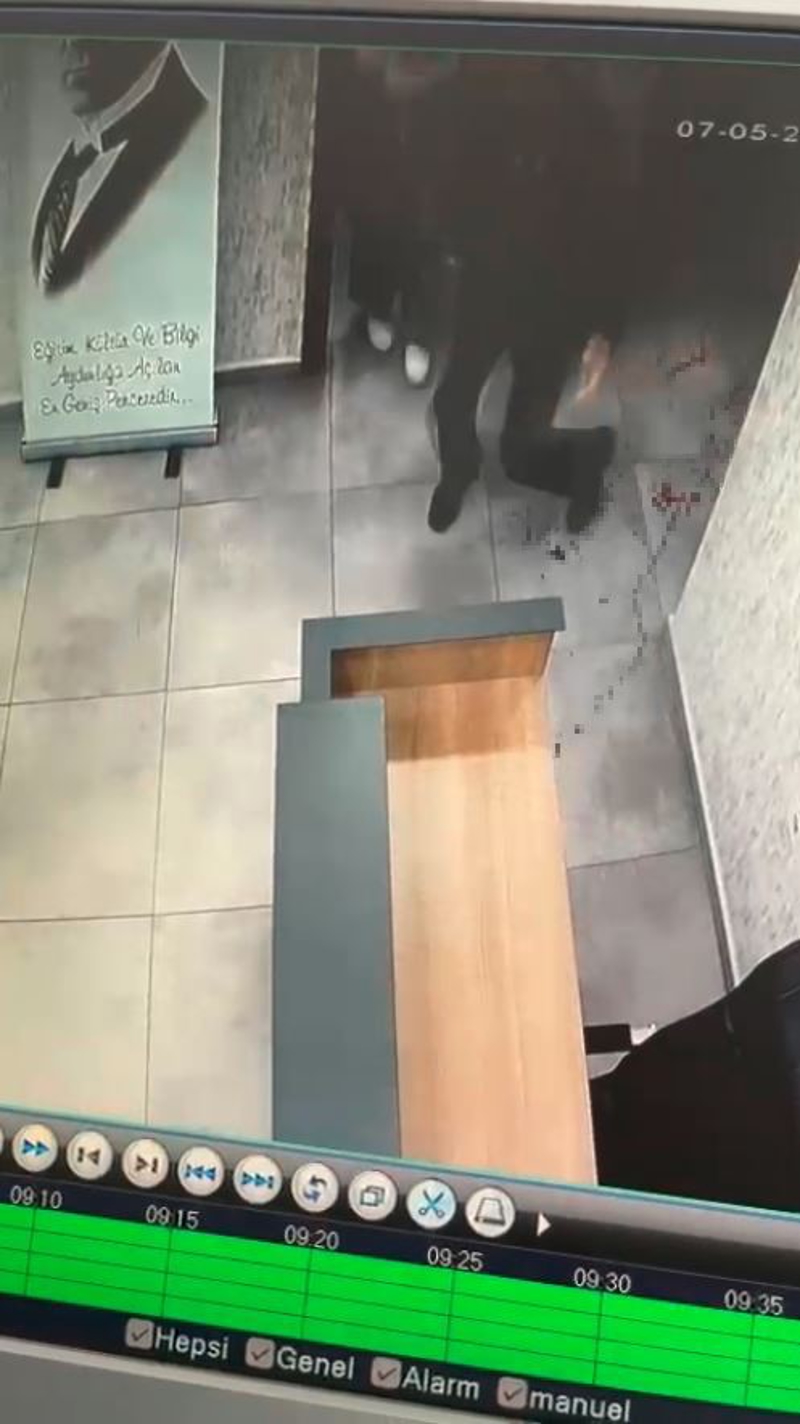 Eski öğrencisi tarafından silahlı vurulan okul müdürü İbrahim Oktugan'ın son görüntüleri ortaya çıktı. Görüntülerde koşar adımlarla müdürün odasına giren öğrencinin saniyeler içinde aynı şekilde koşup dışarı çıktığı görülüyor. Silahlı saldırı sonrası yaralanan Okul Müdürü İbrahim Oktugan'ın ise yaralı halde odasından çıktıktan sonra yere yığılıp yardım istediği o anlar yer alıyor.