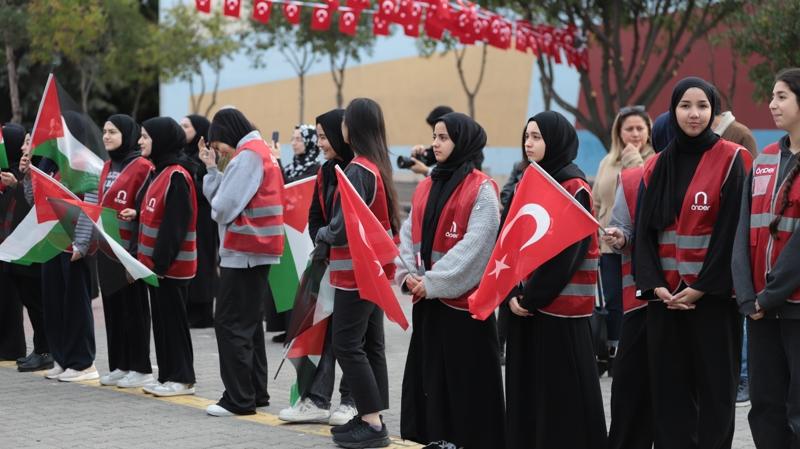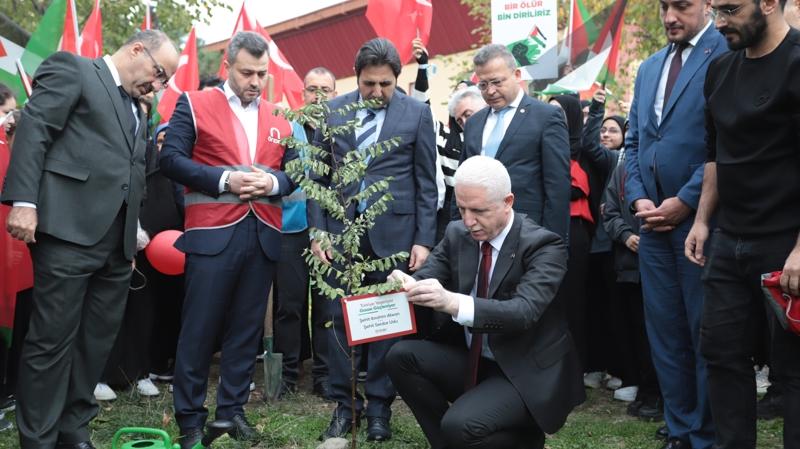Bugün okulların bahçelerine diktikleri fidanları gençlere emanet ettiklerini kaydeden Ceylan, "Bu fidanların her birine ülkemiz için şehit olmuş bu vatanın evlatlarının isimlerini vereceğiz. Aynı zamanda 75 yıldır Filistin'de katil İsrail'in zulmü altında inleyen ve şehit olan arkadaşlarınızın, kardeşlerinizin, Filistinli çocukların isimlerini vereceğiz. Sizlere ülkemizi, bugünlerimizi ve yarınlarımızı emanet edeceğiz" diye konuştu.