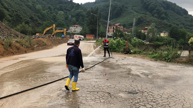 Yağışın etkisini yitirdiği İkizce ve Çaybaşı'nda, Büyükşehir ile ilçe belediyelerinin ekipleri temizlik çalışması yapıyor.