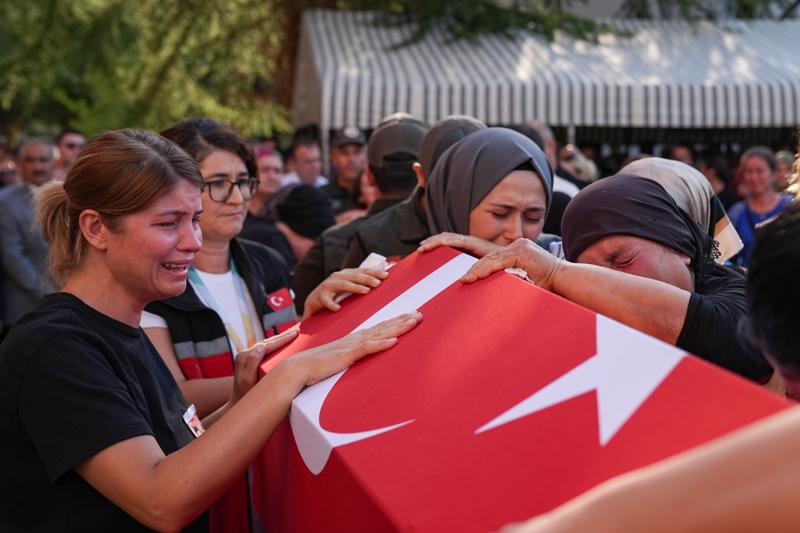 Eskişehir'de orman yangınında şehit olan 10 kişinin arasında yer alan Tolunay Kocaman, memleketi Seyitgazi'nin Kümbet mahallesinde gözyaşları içinde son yolculuğuna uğurlanırken, 1 hafta önce evlendiği eşi Burcu Kocaman ayakta durmakta güçlük çekti.