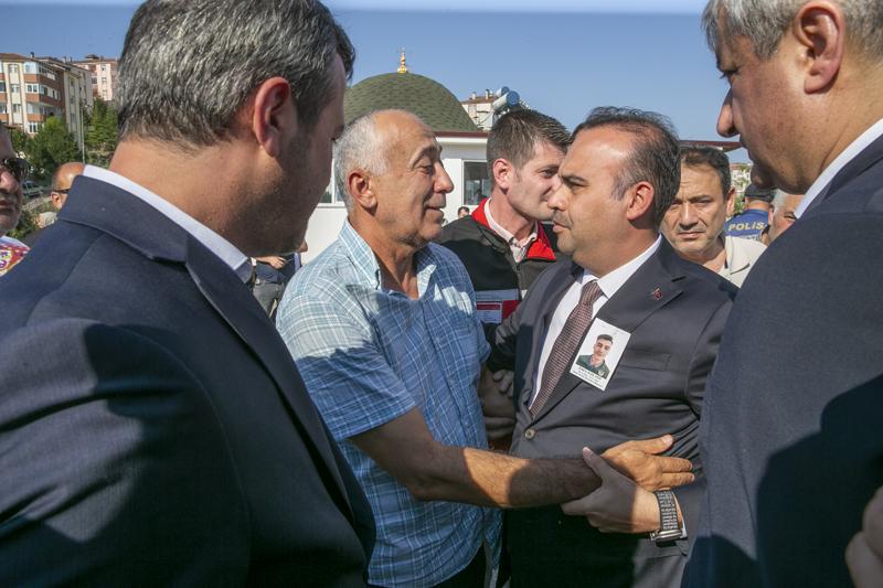 Cenaze törenine katılan Tarım ve Orman Bakanı İbrahim Yumaklı, şehidin eşi Eda, babası Salih, annesi Habibe, ikiz kardeşi Faik ve çocukları ile yakınlarına başsağlığı diledi.