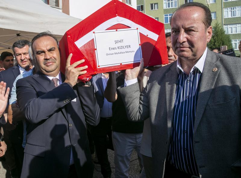 Seyitgazi ilçesinde çıkıp Afyonkarahisar'a sıçrayan orman yangınında şehit olan orman muhafaza memuru Enes Kızılyer, Karabük'te son yolculuğuna uğurlandı.
