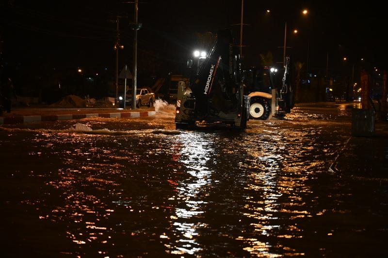 Belediye ve itfaiye ekipleri, biriken suların tahliyesi için çalışma başlattı.