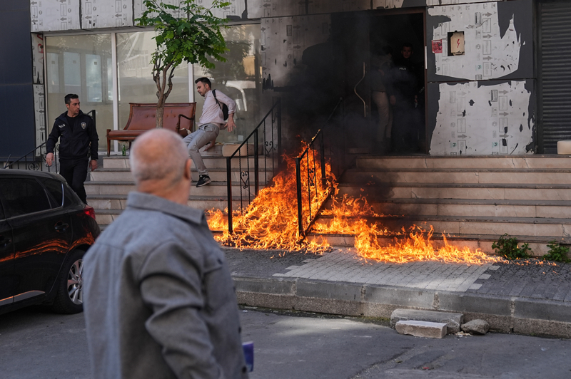 Ekipler, binanın çevresini güvenlik şeridiyle kapatırken, oluşan küçük çalı yangını itfaiye ekiplerince söndürüldü.