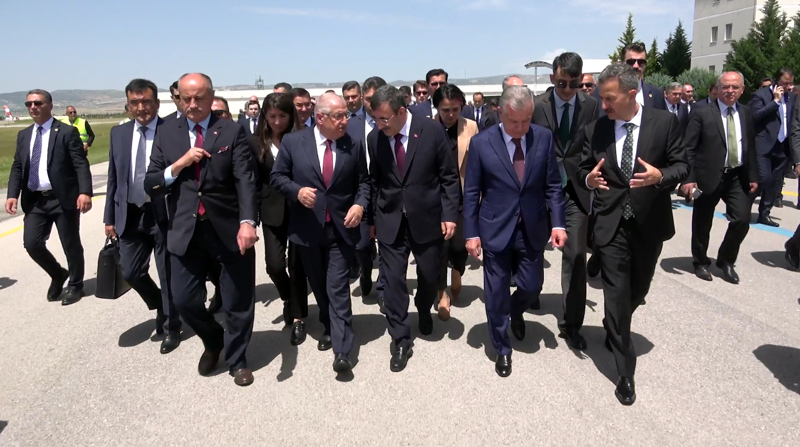 Gösteri uçuşunun ardından alanı gezen Mirziyoyev, Görgün ve diğer yetkililerden alandaki silah ve teçhizata ilişkin bilgi aldı. Mirziyoyev, yerli ve milli savaş uçağı KAAN ile ANKA insansız hava aracını da Yılmaz ve Görgün ile inceledi.