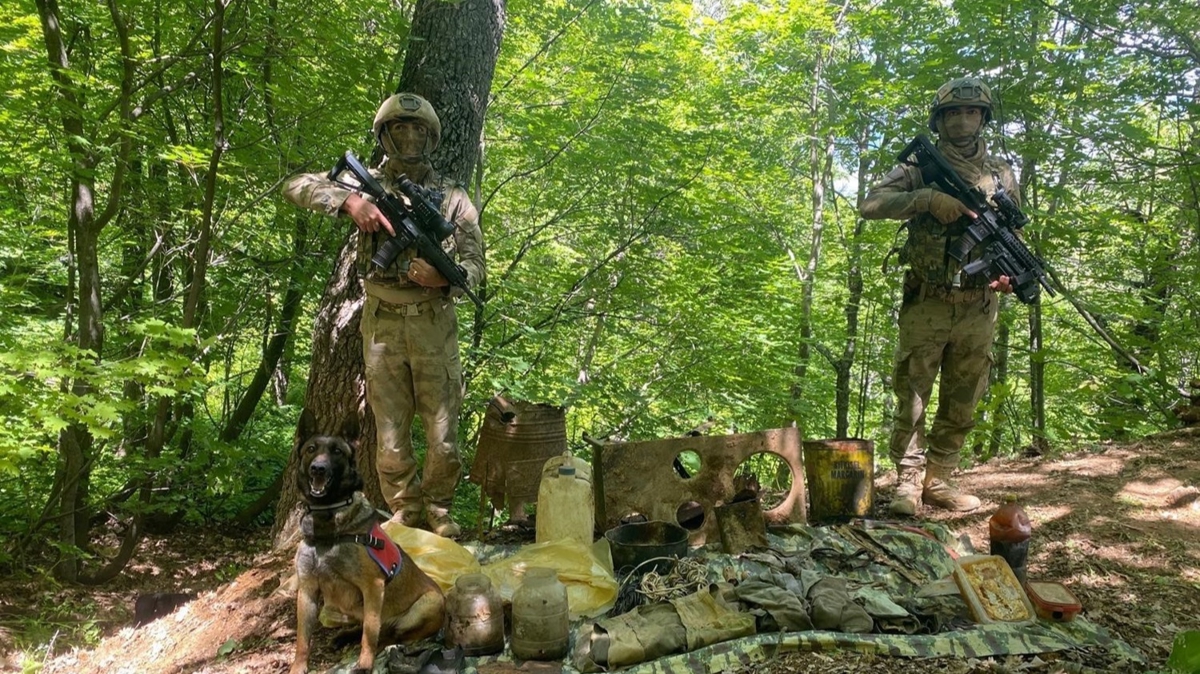 Sığınakta gerçekleştirilen aramada, el yapımı patlayıcı yapımında kullanılan malzemeler ile gıda, giyim ve yaşam malzemesi bulundu.