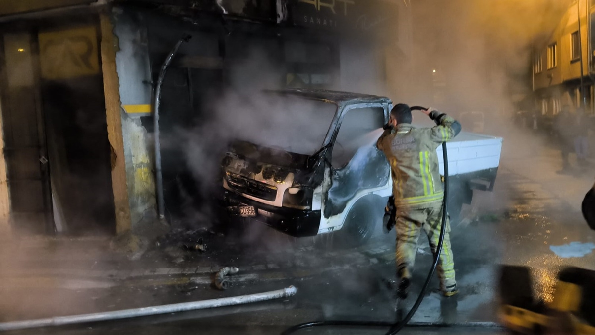 Bursa'nın İnegöl ilçesinde, park halindeki kamyonette çıkan ve bir işletmeye sıçrayan yangın söndürüldü.