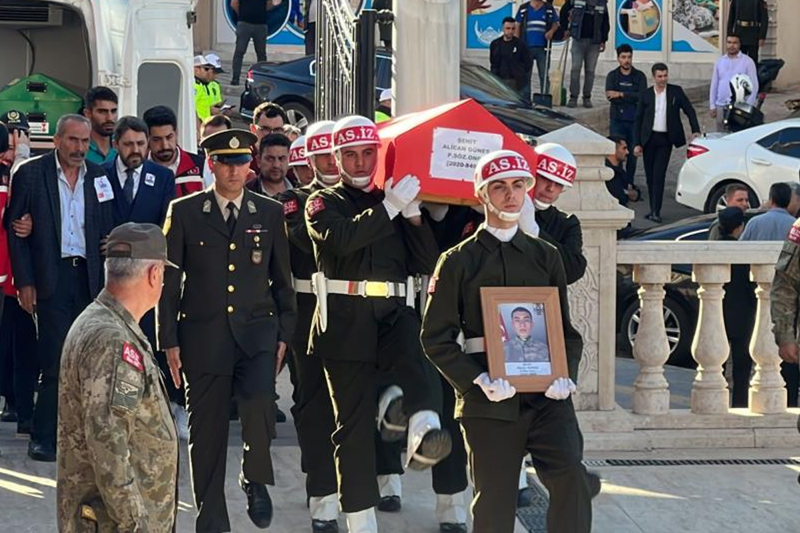 Alican Güneş için Abdülhamit Han Camii'nde cenaze töreni düzenleniyor. Şehidin naaşı askerlerin omuzlarında cami alanına getirildi.