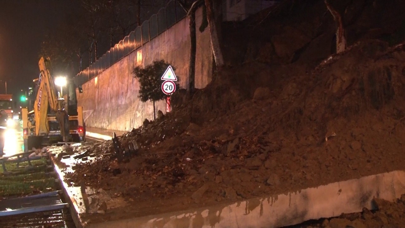 Zabıta ve polis ekipleri, yıkılan istinat duvarının bulunduğu yolu trafiğe kapatarak, olayla ilgili çalışmalarını sürdürüyor.