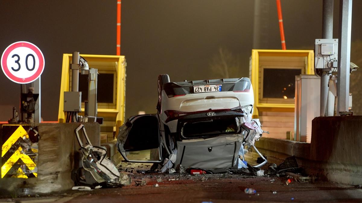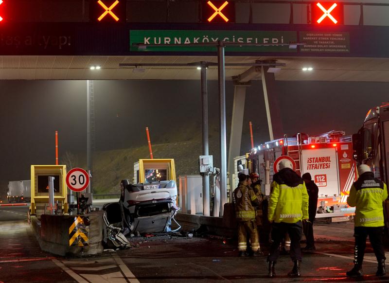 Ankara yönüne giden D.Ç. idaresindeki 34 PAB 427 plakalı otomobil, Kuzey Marmara Otoyolu'ndaki Kurnaköy Gişeleri'ne çarparak devrildi.