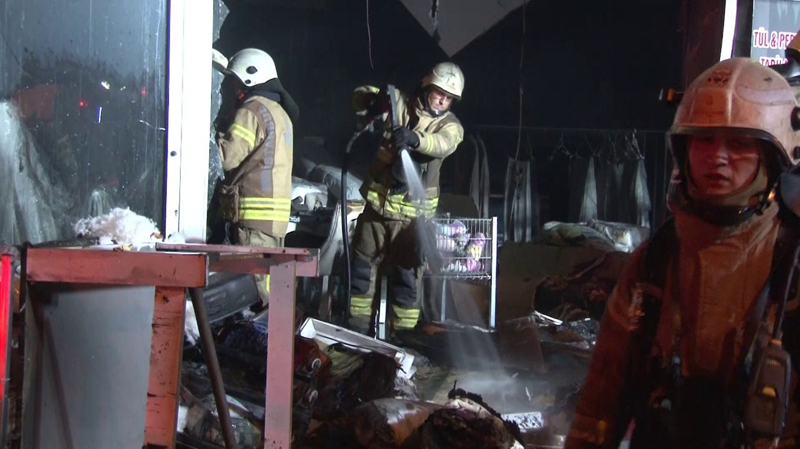 Durumun bildirilmesi üzerine olay yerine çok sayıda itfaiye ekibi ve polis ekibi sevk edildi. Olay yerine gelen itfaiye ekipleri yaklaşık bir saatlik uğraş sonucu alev topuna dönen iş yerini söndürmeyi başardı.