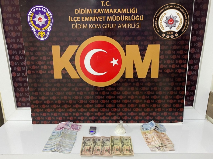 Aydın Narkotik Suçlarla Mücadele Şube Müdürlüğü ve Didim İlçe Emniyet Müdürlüğü ekipleri, Suriye uyruklu iki şüphelinin ilçeye uyuşuturucu madde ve sahte para sokacağı yönünde bilgi aldı. Harekete geçen ekipler, ilçenin girişinde uygulama yapmaya başladı. Saat 21.00 sıralarında 33 ACP 566 plakalı otomobili durduran polis, Suriye uyruklu Mahmut Ellaç Hüseyin ve Muhammed El Halid'i araçtan indirdi. Polis, yaptığı aramada 50,32 gram metamfetamin, hassas terazi, uyuşturucu ticaretinden elde edildiği değerlendirilen 5 bin 805 lira, sahte olduğu değerlendirilen 5 adet 50 Amerikan doları ele geçirdi. Gözaltına alınan şüpheliler, sorgulanmak üzere emniyete götürüldü.