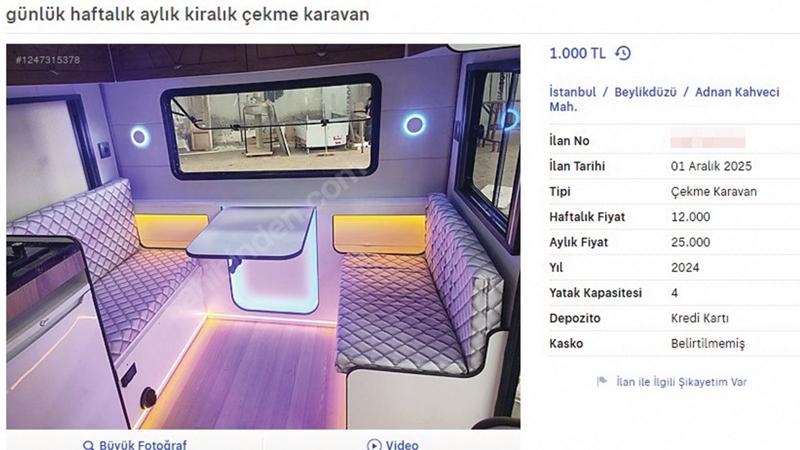 Beylikdüzü sahilindeki karavanlar için internette onlarca kiralık ilanı var. Günlük bin ila 2 bin TL'ye kiralanan karavanlarda, ışıklı ambiyans oluşturulması da dikkat çekti.