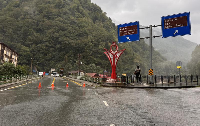 Toprak kayması sebebiyle Çamlıhemşin ilçesindeki Ayder Yaylası yolunda ulaşım sağlanamıyor.