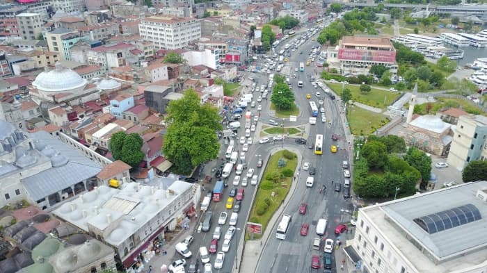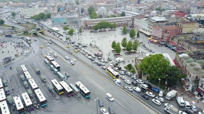 Sağanak yağış trafiği de olumsuz etkiledi. Yağış nedeniyle yavaşlayan araçlar ve Eminönü'nde bulunan alt geçidin kapanmasının ardından trafik kilitlendi. Eminönü'nde oluşan trafik yoğunluğu havadan görüntülendi.