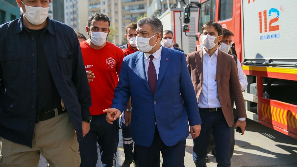 İzmir'deki deprem sonrası Bayraklı ilçesindeki Rıza Bey ve Doğanlar apartmanlarındaki çalışmalarla ilgili AFAD yetkililerinden bilgi alan Bakan Koca, depremde zarar gören vatandaşlarla sohbet etti.