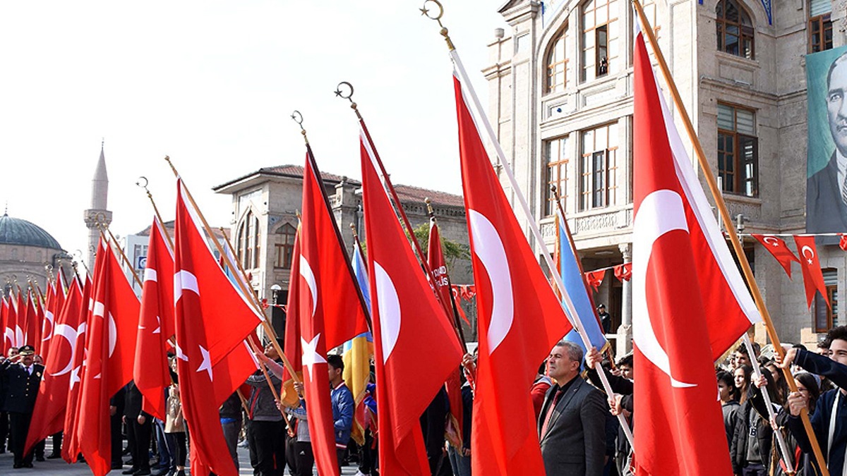 İl Sağlık Müdürü Çiğdem Cerit'in de aralarında olduğu 100 sağlık personeli, müdürlük binasından ellerinde Türk bayraklarıyla çıkarak "100. Yıl" koreografisi oluşturdu.
