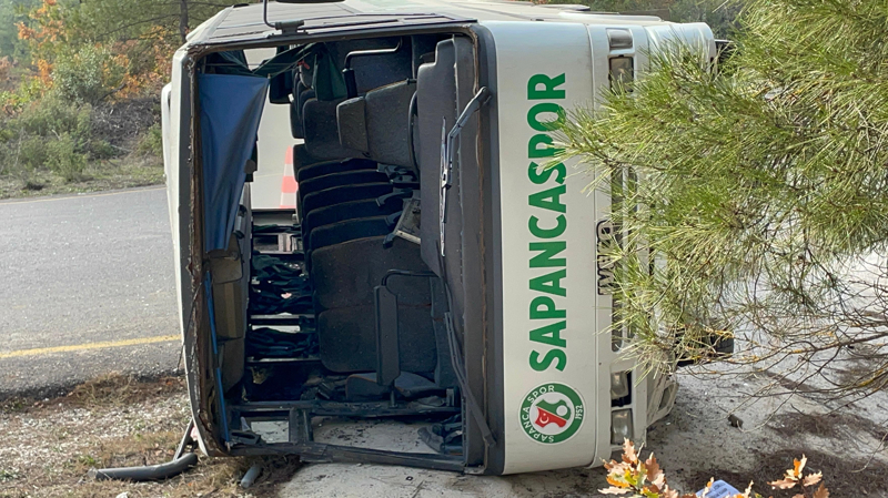 Pamukova Bakacak Mahallesindeki Gençlik Kampı gezisinden dönen Sapanca İlkokulu öğrencilerini taşıyan Sapanca Belediyesine ait Ö.Ö. idaresindeki 54 SA 870 plakalı midibüs, Kadıköy-Karapınar mahalleleri mevkisinde kontrolden çıkarak devrildi.