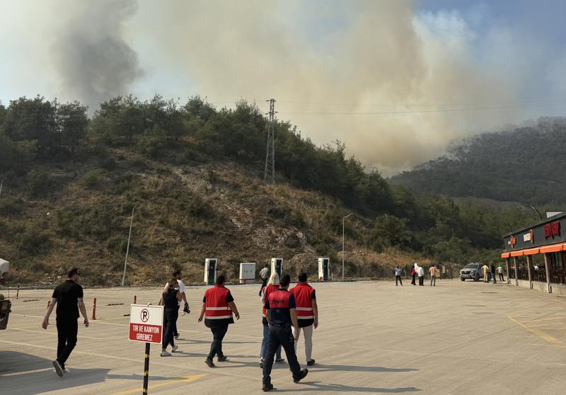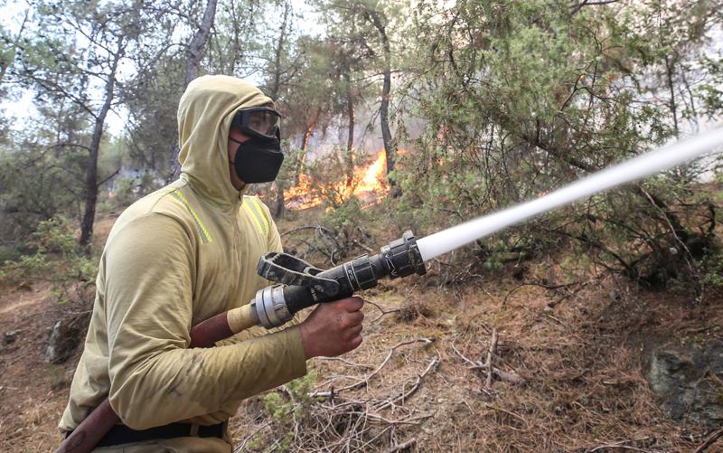 Yangının ilerlemesini durdurmak için bölgedeki bazı ağaçlar, orman işçileri tarafından kesiliyor ve belirli noktalarda arazözler bekletiliyor.