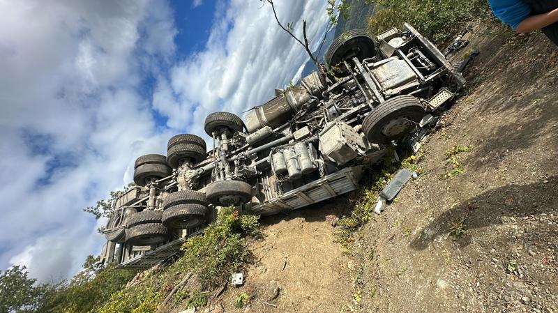 Alınan bilgiye göre, Hayati Gün idaresindeki 55 PP 464 plakalı kamyon, Çaltu Mahallesi mevkisinde şarampole devrildi.