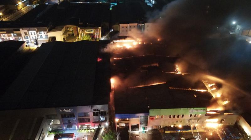 Kısa sürede büyüyen, klima ve sünger fabrikalarına da sıçrayan yangına ekiplerin müdahalesi sürüyor.