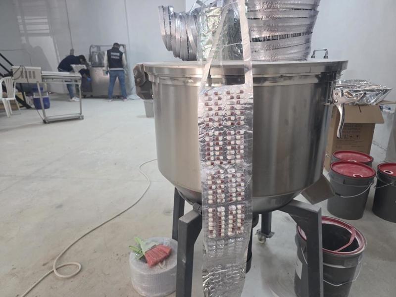 Yapılan aramalarda 262 bin 473 uyuşturucu hap, 1 blister hazırlama makinesi, 1 kapsül doldurma makinesi, 1 kapsül temizleme makinesi, 1 karıştırma makinesi, 1 jeneratör, 2 kompresör makinesi, 3 milyon uyuşturucu hap yapabilecek 833 kilo 500 gram hammadde, 25 kilogram katkı maddesi, 972 bin boş kapsül ve çeşitli plastik malzemeler ele geçirildi
