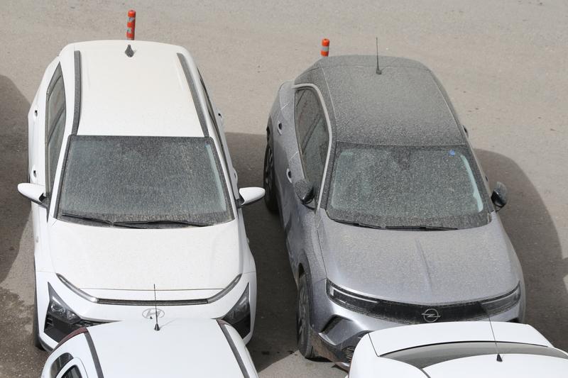 Ayrıca park halindeki araçların üzeri de tozla kaplandı.
