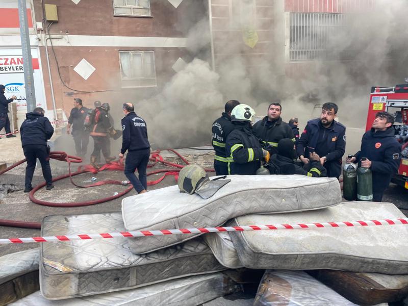İlçeye bağlı Devteyşti Mahallesi'nde 3 katlı bir evin altında faaliyet gösteren yatak deposunda henüz belirlenemeyen nedenle yangın çıktı.