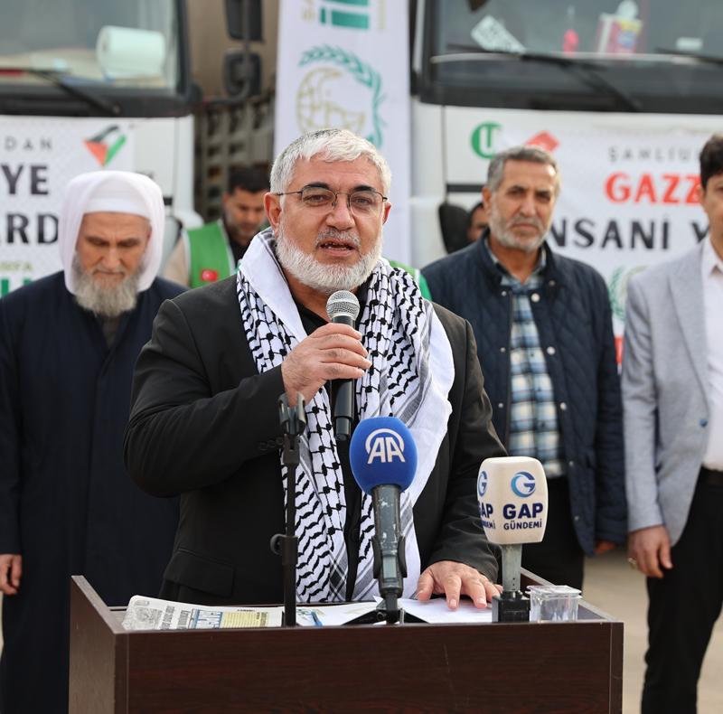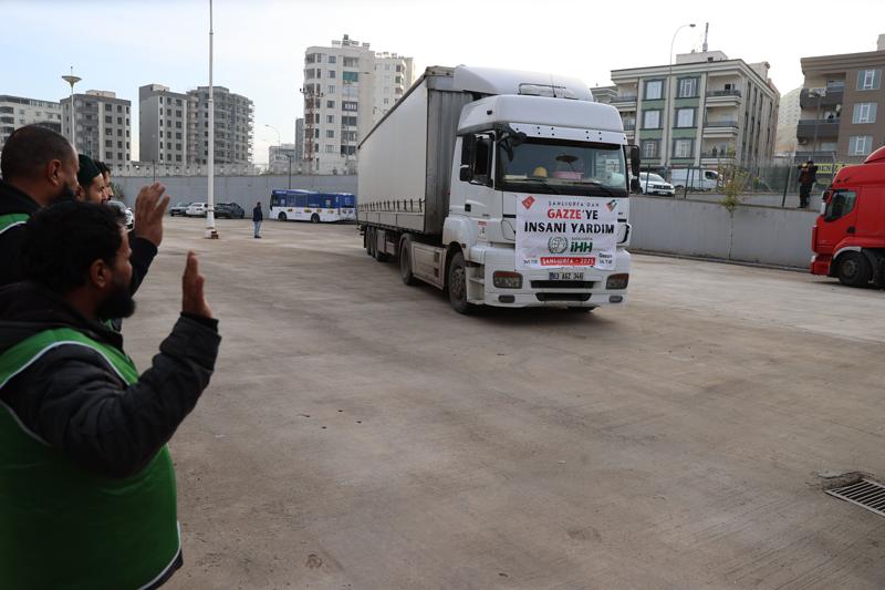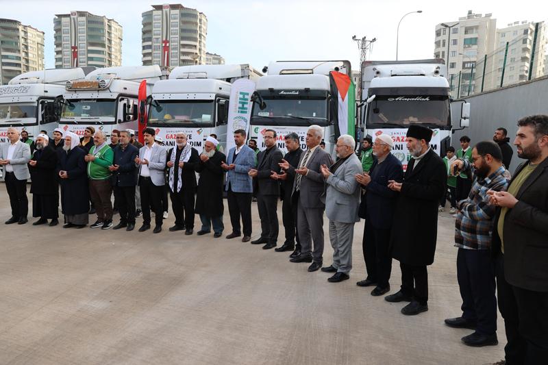 İnsan Hak ve Hürriyetleri İnsani Yardım Vakfının (İHH) Şanlıurfa Şubesi öncülüğünde, hayırseverlerin desteğiyle toplanan gıda malzemelerinin yer aldığı 5 tır, Fuar Merkezi'nde düzenlenen törenle Gazze'ye uğurlandı.