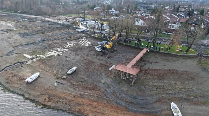 Sakarya Büyükşehir Belediyesi Su ve Kanalizasyon İdaresi (SASKİ) ekipleri, daha önce tebligat yapılan kaçak iskeleler için iş makineleriyle müdahaleye başladı. Göl ekosistemine zarar verdiği belirlenen yapılar kontrollü şekilde sökülüyor.