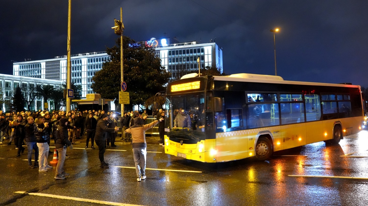 İETT'ye bağlı özel halk otobüslerini temsilen bir araya gelen grup, geniş güvenlik önlemleri altında bir süre bekleyerek, İBB'den ödemelerini alamadıklarını öne sürdü.