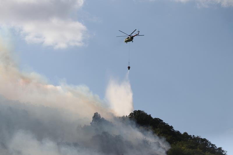 Söndürme çalışmalarına 2 helikopter ve 2 söndürme uçağı da havadan destek veriyor.
