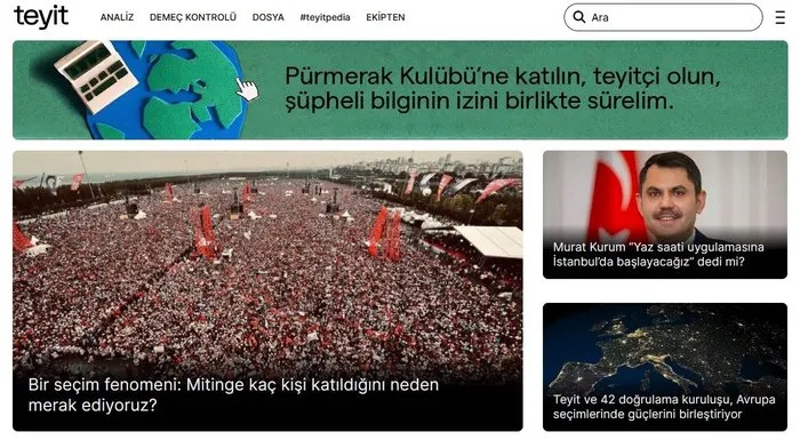 Türkiye'de yapılan seçimler için Facebook, Instagram ve Whatsapp'ın çatı şirketi ABD merkezli Meta, bu 31 Mart seçimlerinde de "Doğruluk Payı" ve "Teyit.org" ile çalışıyor. ABD merkezli Poynter Medya Enstitüsü de "Doğruluk Payı" ve "Teyit.org" ile yoluna devam ediyor. ABD kongresinin fonladığı Ulusal Demokrasi Vakfı (NED), Bill & Melinda Gates Vakfı ve George Soros'a ait Açık Toplum Vakıflarının desteklediği Poynter, birlikte çalıştığı platformların Uluslararası Doğrulama Ağı'na (IFCN) akredite olmasına şart koşuyor. "Doğruluk Payı" ve "Teyit.org" da IFCN'ye akredite durumda yer alıyor.