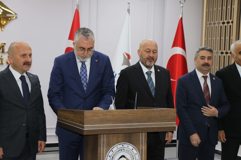 Çeşitli temaslarda bulunmak üzere Adıyaman'a gelen Çalışma ve Sosyal Güvenlik Bakanı Vedat Işıkhan, Vali Osman Varol'u ziyaret edip, yürütülen çalışmalara ilişkin bilgiler aldı. Bakan Işıkhan, daha sonra Organize Sanayi Bölgesi'nde düzenlenen 'Türkiye Yüzyılı'nda Çalışma Hayatı Buluşmaları'na katılıp, iş insanlarıyla bir araya geldi.