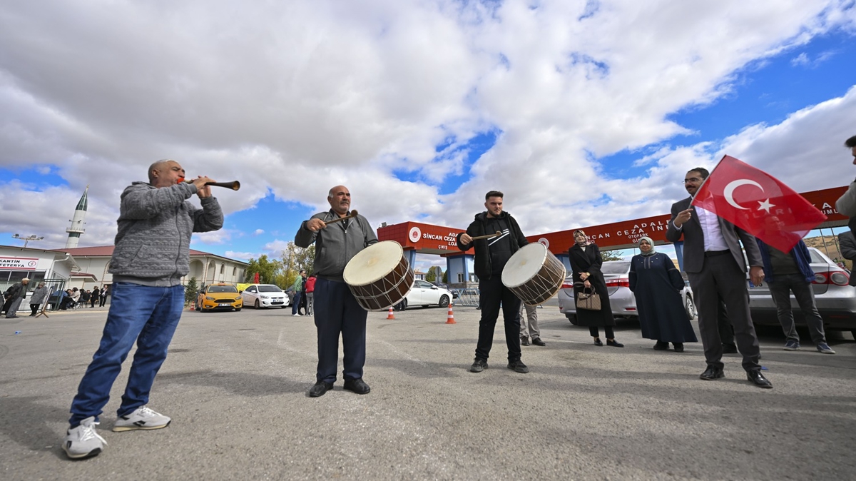 Dernek üyesi Mehmet Celal Almaz, Sincan Yenikent Cezaevi önünde yaptığı basın açıklamasında, FETÖ elebaşı Gülen'in ölümünün tüm devlet düşmanlarına ibret olması gerektiğini söyledi.