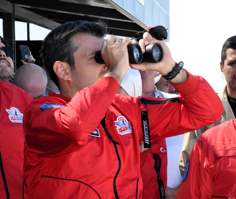 Konuşmaların ardından Vali Mehmet Ali Kumbuzoğlu, Bayraktar ile geri sayımda bulunarak ateşlenen roketleri takip etti.